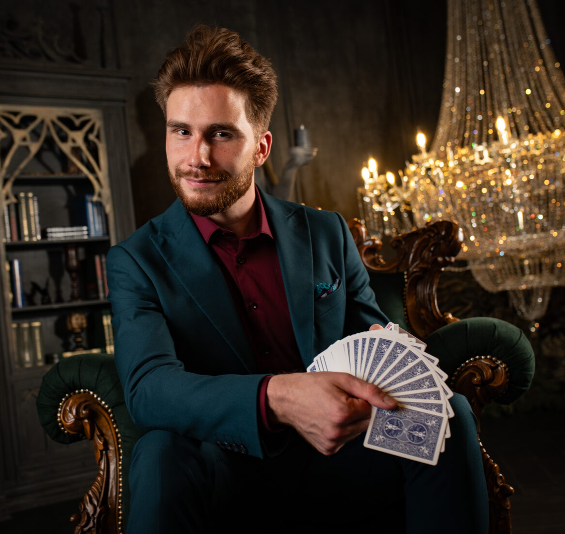 Современная магия, ментализм, интерактив с гостями, интеллектуальные фокусы, юмор и вау-моменты. Это не «кролики из шляпы», а шоу, которое впечатляет, удивляет и обсуждается ещё долго после.